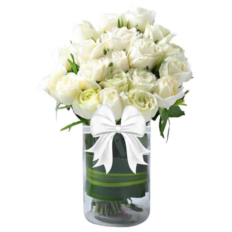11 White Roses Bunch Wrapped in White Paper
