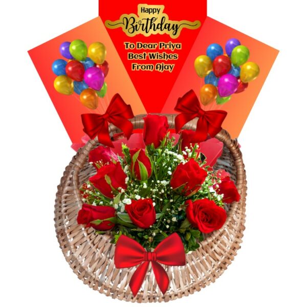 # 001 – A Birthday Special – Unique Personalized Printed Message Basket of Roses