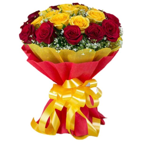 A Fancy Bunch of 21 Red & Yellow Color Roses